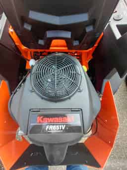 Kawasaki® FR651V Engine: 726cc V-Twin engine providing 21.5 HP of reliable, high-torque power for efficient residential mowing.
